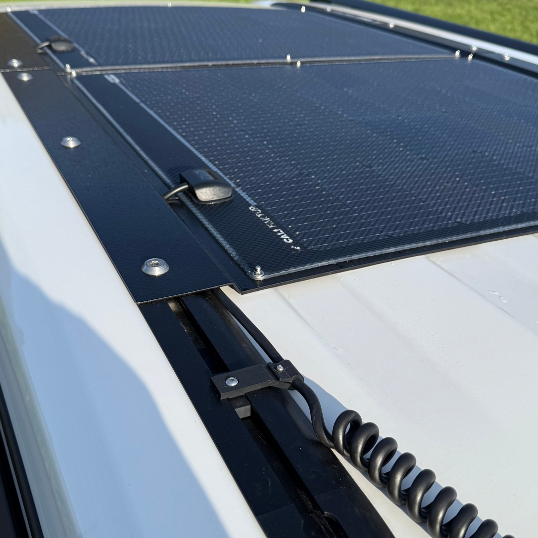 Geniet van uw avontuur met het nieuwe en unieke zonnepaneel van 260Wp voor uw VW California T7, terwijl wij de stroomvoorziening verzorgen.